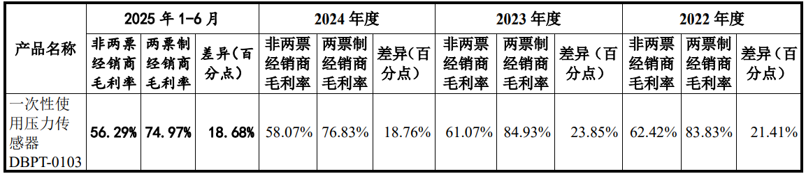 不过,海圣医疗“两票制”模式下的售价较非两票制下的售价高了近一倍,毛利率较非两票制下高了约20%。