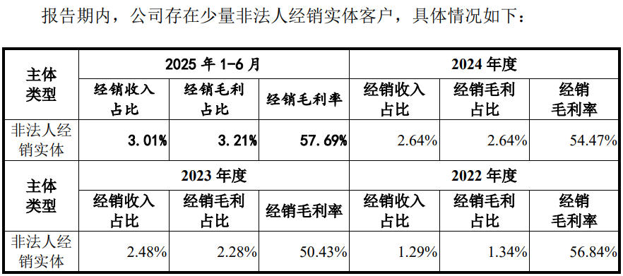 在众多的经销商中,存在部分非签约经销商,报告期各期其数量分别为83家、57家、77家和18家。同时,报告期各期,公司非法人实体客户数量分别为16 家、13家、9家和8家。
