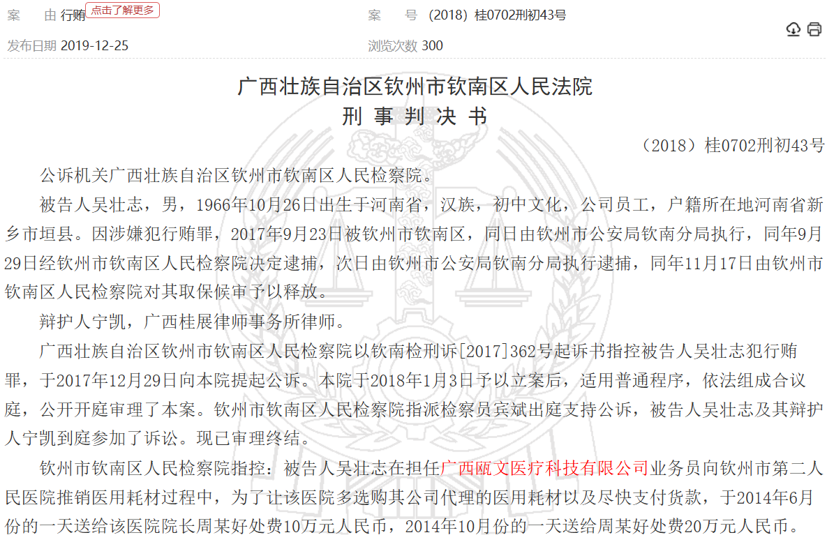 裁判文书网显示,该企业涉多起行贿案。