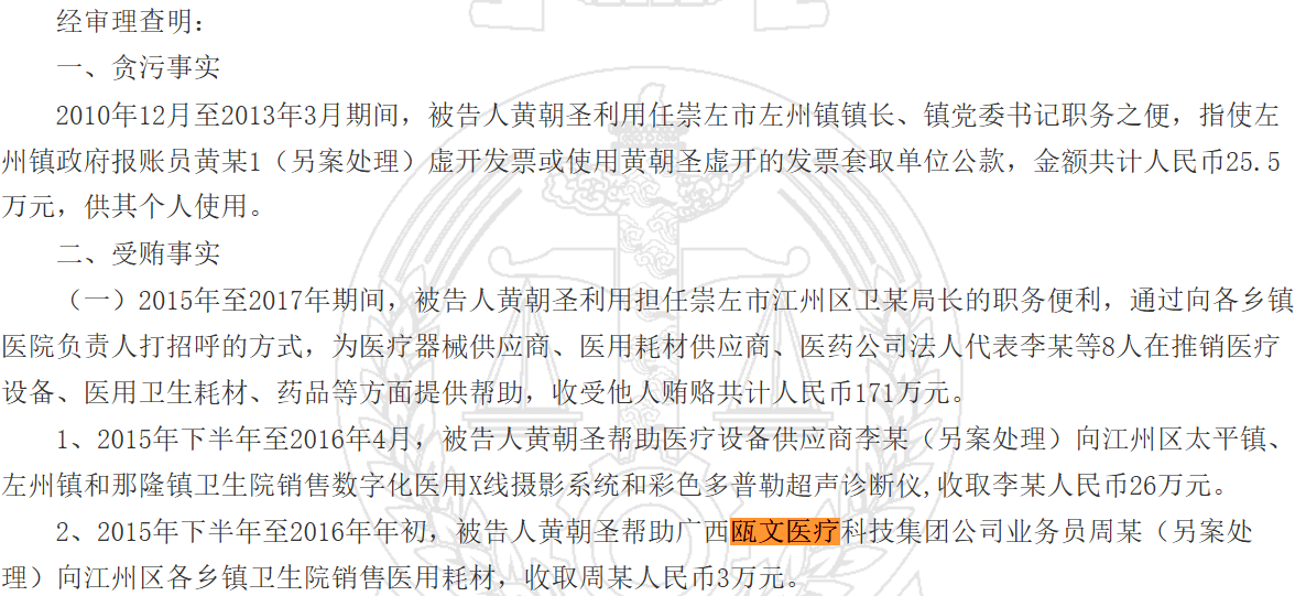 问询函显示,广西瓯文医疗科技集团有限公司为发行人2022年、2023年前十经销商,对其销售金额分别为258.26万元、304.62万元。