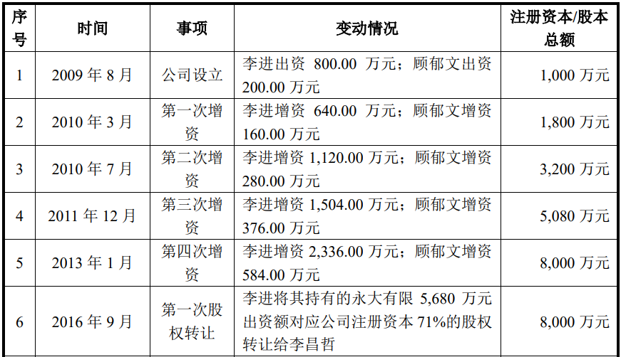 参与四次增资后,2016年9月,李进将其持有的71%股份转让其父亲李昌哲,公司称,此次股权转让系家族内部股权结构调整,未实际支付对价。