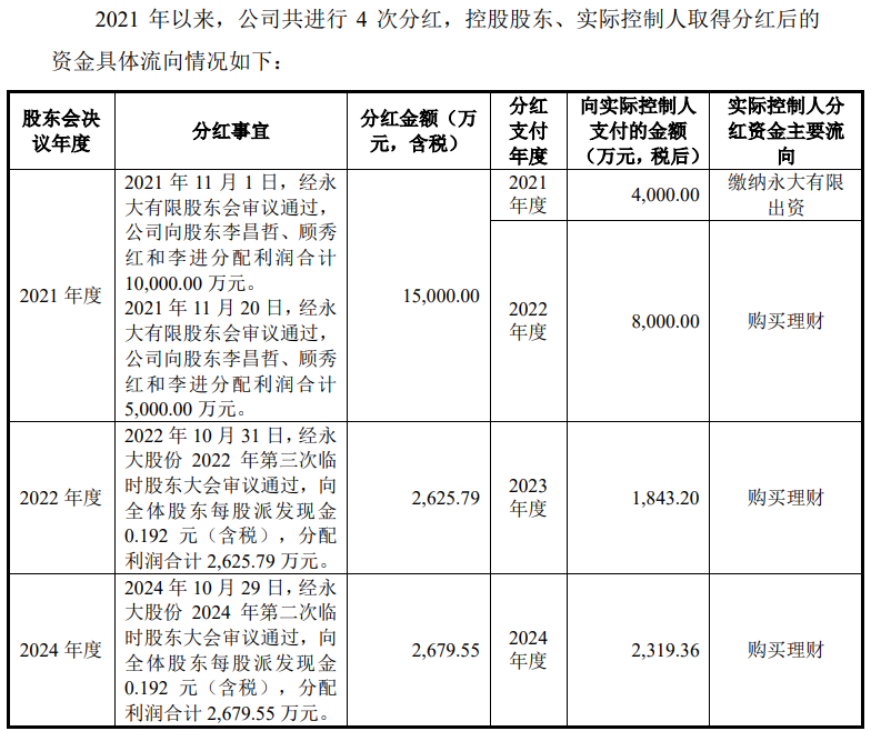 实际控制人李昌哲、顾秀红、李进除2021年度取得部分分红款后用于向发行人实缴出资外,取得的其余历次分红均主要用于购买理财产品,购买理财产品金额为12,162.56元。