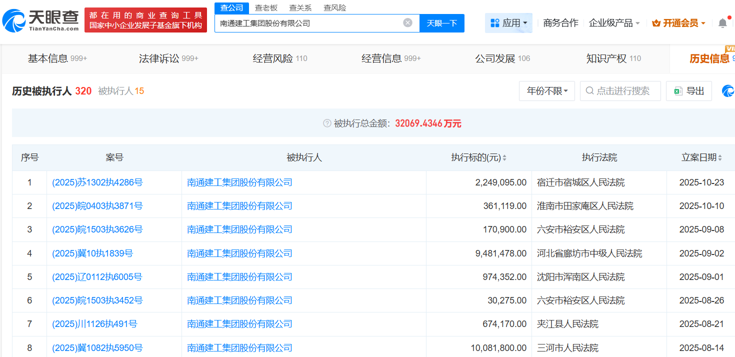 天眼查显示,南通建工涉及司法案件3,631起,作为被告2,666起,涉案金额约8.79亿元,纳入被执行人300多次,被执行总额约3.21亿元,该企业曾出现了40多起环保违规被罚57.5万元,曾拖欠税款超千万。