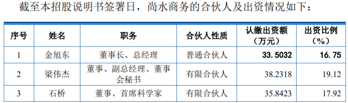 不过,尚水商务出资份额最高的并非金旭东,其低于董秘梁伟杰和董事石桥的出资份额,那么,除了增强控制权外,是否规避相关人员股份锁定期?
