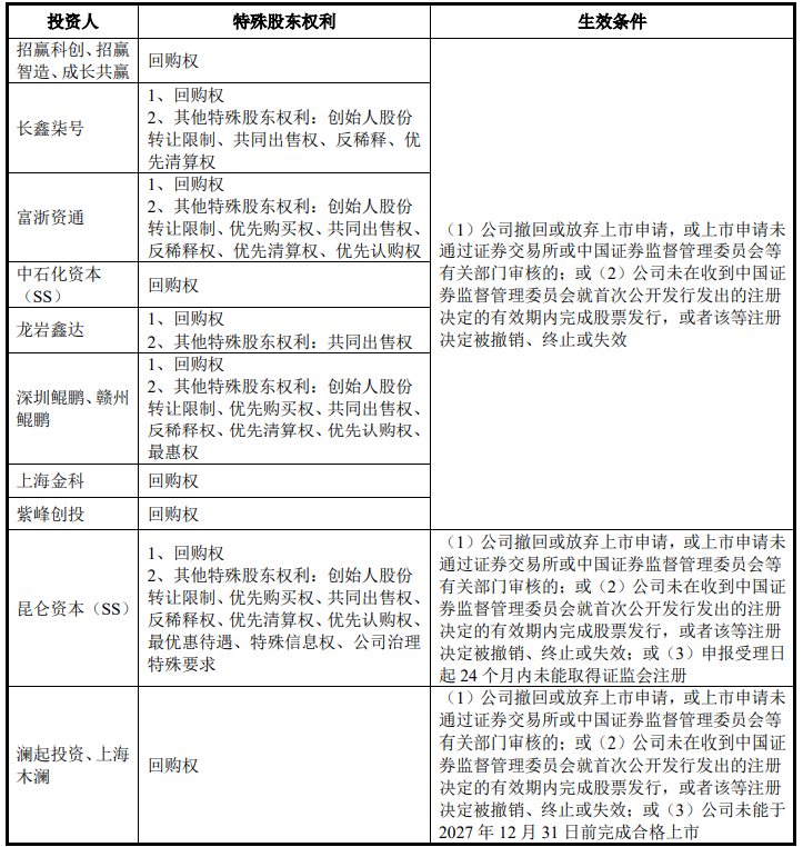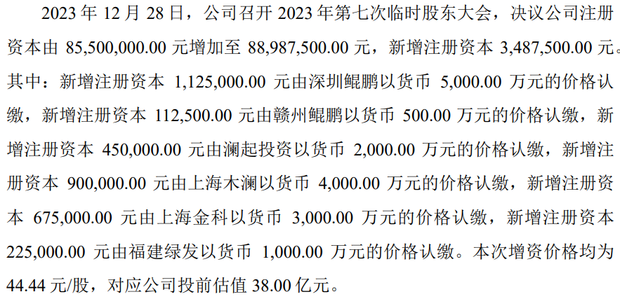 在后来的经营发展中,发行人不断引进外部投资者。仅报告期内的2022年12月至2023年12月的一年间,发行人进行了6次增资及5次股权转让,发行人估值由10亿元上涨至38亿元,期间,发行人引进了招赢科创、长鑫柒号、富浙资通等10多家投资机构,引入资金约4.9亿元,除福建绿发外,均与之签订了有关上市安排的对赌协议。