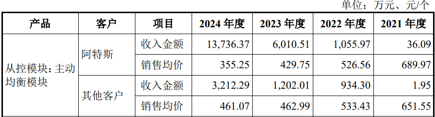 公司对其销售的主要产品主动均衡模块的售价从2022年开始低于其他客户,尤其是2023年、2024年,低于其他客户价格7.18%、22.95%。
