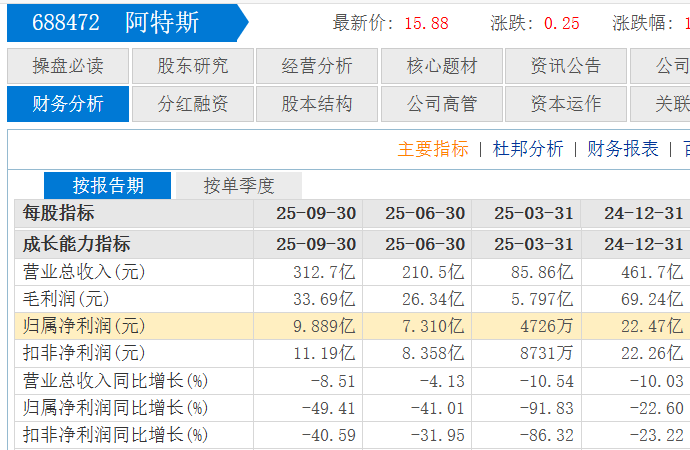 根据阿特斯披露的年报,其2024年出现了收入和利润的双重下滑,2025年上半年及前三季度呈现继续下滑趋势。