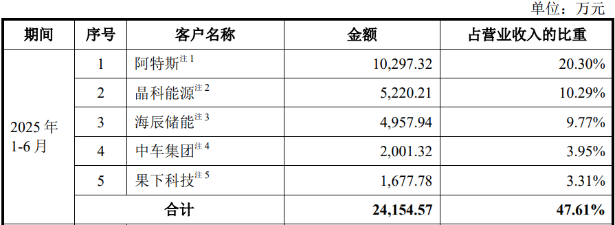 2021年8月,双方开始发生交易,像阿特斯一样,入股后,公司对其销售快速攀升,2025年更是跃居至第二大客户,当期销售额增长至5,220.21万元,占比提高至10.29%,报告期内累计对其销售8,927.54万元。