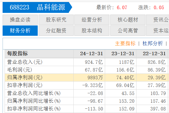 2024年,晶科能源出现了收入和利润的双重下滑,尤其是利润,扣非净利润还出现了9亿多的大幅亏损。2025年前三季度,该企业营业收入再次同比下滑33%,扣非净利润为-45.43亿元,亏损幅度进一步加大。