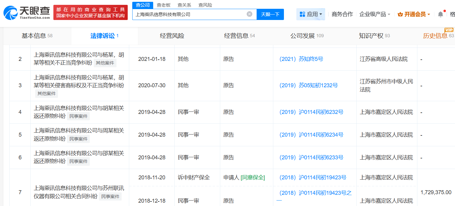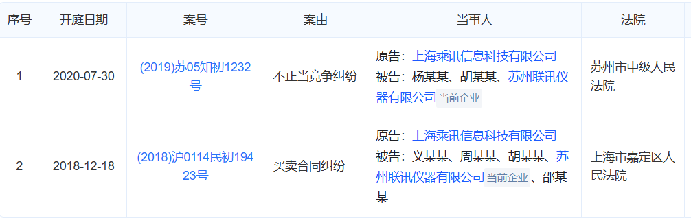 公开资料显示,上海乘讯曾与联讯仪器发生合同纠纷,同时,上海乘讯将发行人及实控人以不正当竞争起诉。