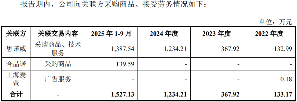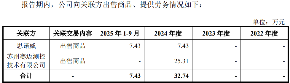 招股书显示,思诺威科技(无锡)有限公司(简称“思诺威”)为发行人的参股公司,持股占比6.67%,报告期内,公司对其累计采购3,122.66万元,其中,累计委托其研发费用为1,348.83万元。同时,对其销售14.86万元
