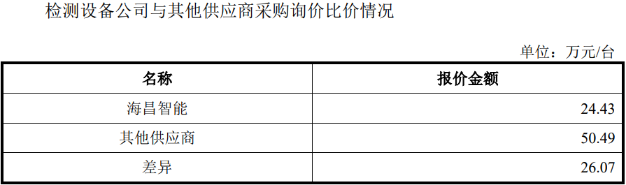 招股书显示,2022年-2024年,发行人对海昌智能的采购额分别为19,773.34万元、18,317.58万元和17,934.75万元,而海昌智能披露的对发行人的销售收入分别为19,088.16万元、16,943.20万元和19,828.61万元,分别相差685.18万元、1,374.38万元和1,893.86万元。