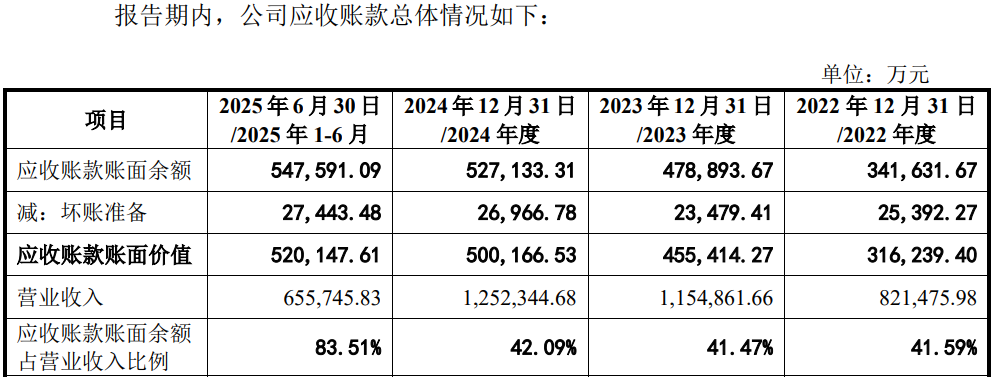 截至2025年6月,发行人坏账准备飙升至27,443.48万元,其中,按单项计提坏账准备23,030.22万元,其大的坏账准备客户为TENA,其坏账准备达8,743.90万元。