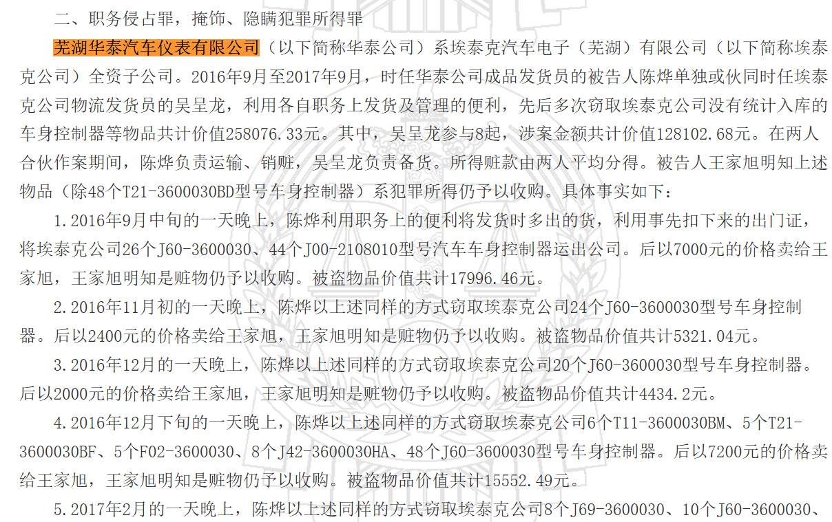 作为发行人的创始股东和第一股东,奇瑞汽车曾发生多起核心员工受贿案。