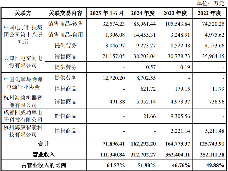 招股书披露,发行人其他前五客户主要包括发行人控股股东中国电科集团、中国科学院、国家电投集团、中国能源建设集团、中国节能环保集团、国家能源投资集团、中国大唐集团及上述下属单位、关联方中国化学与物理电源行业协会、上海格思航天科技、大同市晟能新能源等。