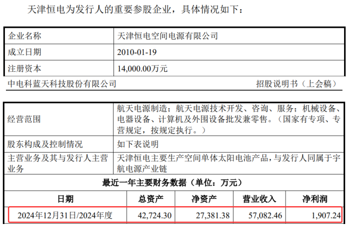 而据中国卫星2024年年报显示,该年度天津恒电实现收入为50,957.93万元,净利润为1,755.84万元,发行人披露的收入较其多出6,124.53万元、净利润较其多出151.40万元。