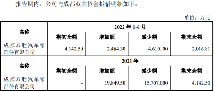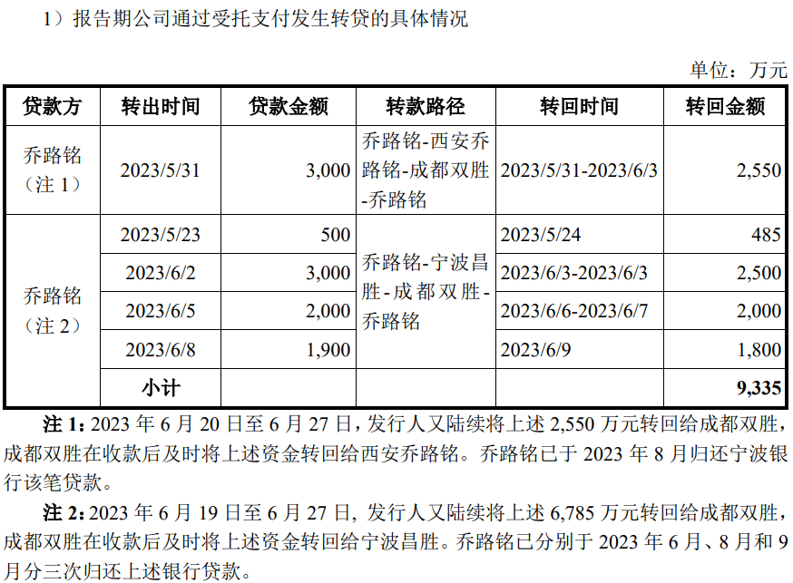 值得注意的是,成都双胜为发行人提供了大额的资金借款,还配合公司利用转贷获取银行贷款9,335万元。