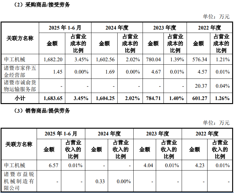 上述大供应商中,申工机械为王海江之堂哥王国生控制的企业,比照关联方披露,报告期内累计对其采购4,641.14万元,同时,报告期内,还对其进行了少量的销售。交易价格方面,其与无关联的第三方存在一定的差异。