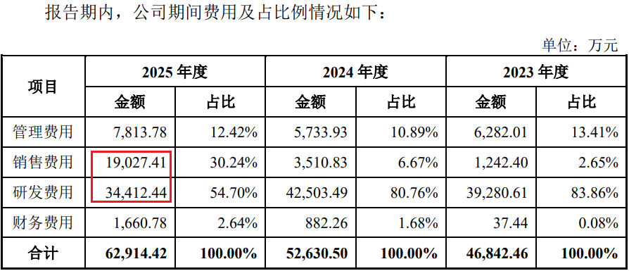 招股书显示,发行人的办公及招待费较高,其中,管理费用中的办公及招待费1,983.39万元,销售费用中该费用投入1,774.42万元,2025年该项费用达1,707.47万元,累计投入3,757.81万元。