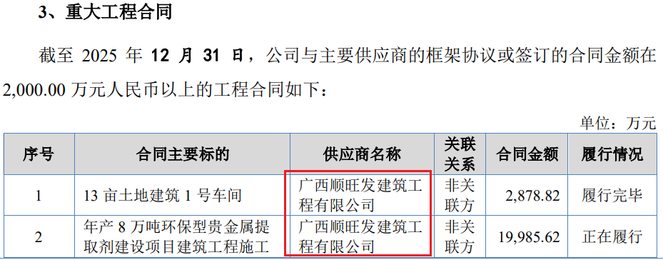 另外,发行人重大供应商为广西顺旺发建筑工程有限公司,截至2025年末,公司向其采购合同合计金额为22,864.44万元,资料显示,该企业设立于2023年8月,实缴资本为0,2024年年报显示参保人数为3人。