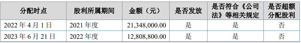 募资资金中1.5亿元用于铺底资金, 而在上市前,发行人进行了两次分红,金额分别为2,134.80万元、1,280.88万元。