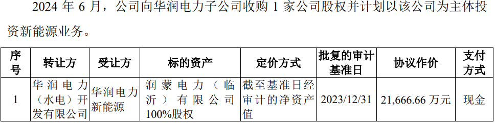 2022年9月至12月,发行人向华润电力及其子公司收购多家新能源业务相关资产,包括以股权为对价收购Elite Wing100%股权、现金收购华润智慧能源投资100%股权、以现金向南国能源等公司收购17家从事新能源发电业务的境内项目公司股权等。