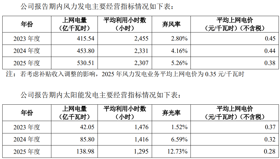 而报告期内,发行人风力发电及太阳能发电平均利用小时数均逐年下滑,其平均上网电价也逐年下降。