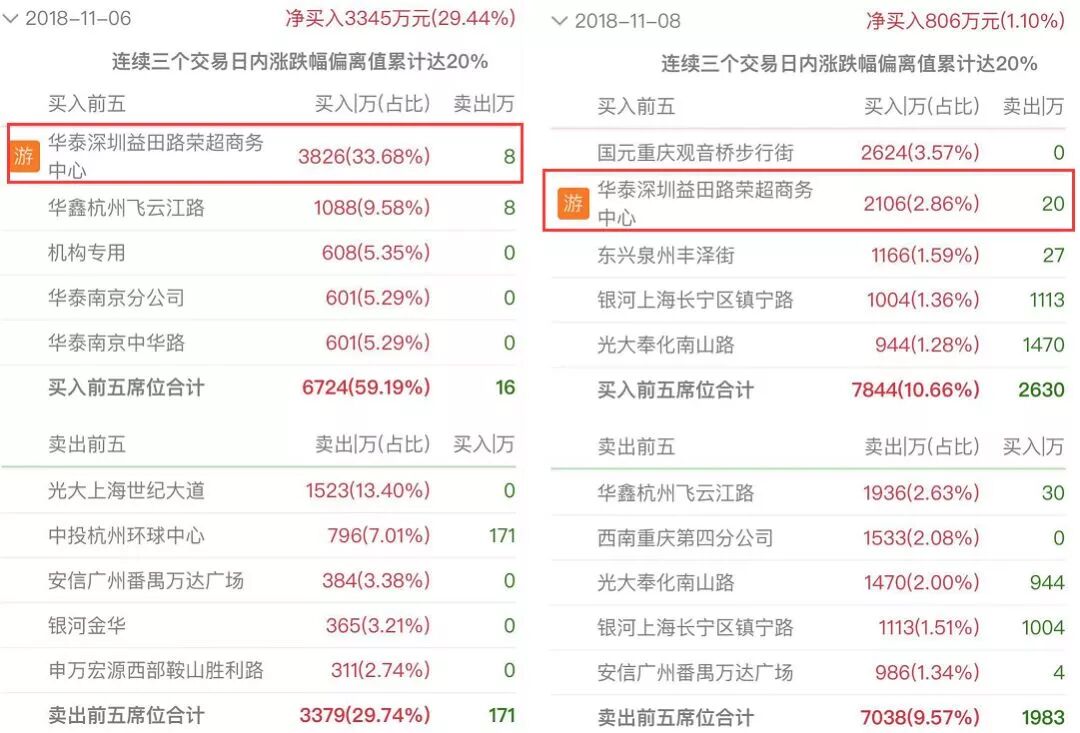 数据显示,华泰证券深圳益田路荣超商务中心营业部近期表现抢眼。自10月19日反弹以来,该营业部累计成交金额超过15亿元,累计操作30多只股票,不乏天风证券、迈瑞医疗、南京证券、张江高科、奥马电器、瀚叶股份、康美药业、电子城等热门股票。不过,市场最关心的还是该席位对大妖股恒立实业的操作,该席位于11月5日至11月8日,累计买入恒立实业近6000万元,结合目前恒立实业的股价,该席位账户浮盈超过20%。