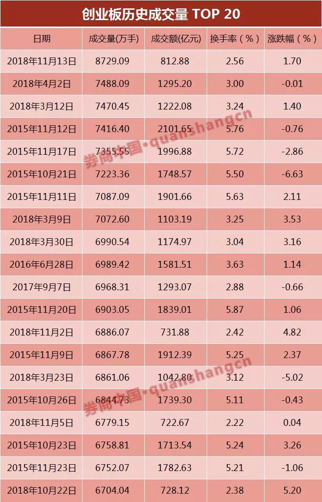创业板历史上成交量及成交额峰值如下(TOP 5):
