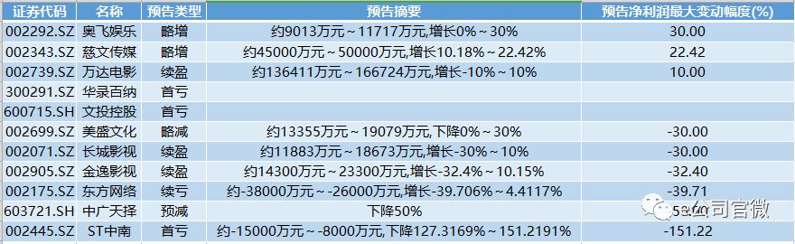 而已经预告2018年度业绩的11家影视公司中,4家业绩预亏,2家预减,业绩并不乐观。