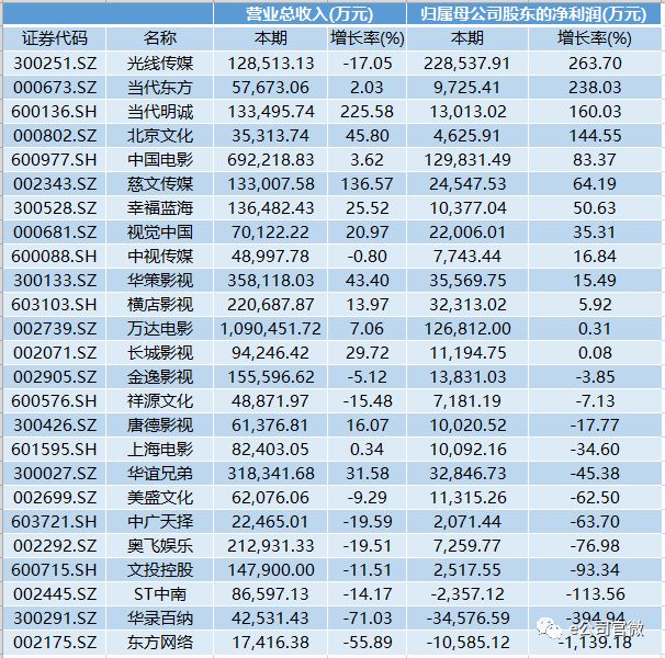 相比之下,今年前三季报A股影视公司总体业一般。申万三级影视娱乐行业25家公司中,2018年前三季度有12家公司净利润下滑,占比达48%。