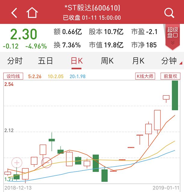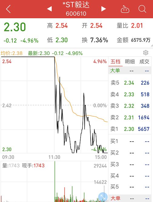 一个在退市边缘徘徊、公司高管集体失联的上市公司,股价竟然连续7个交易日内有6次涨停,股价大涨41%。这只股票就是今日上演天地板的*ST毅达。
