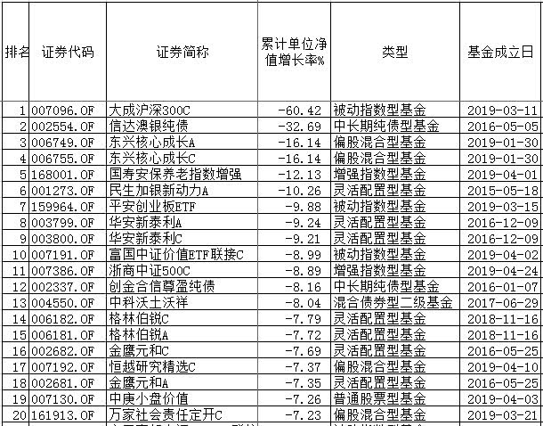 上半年基金业绩后20 数据来源:同花顺iFinD