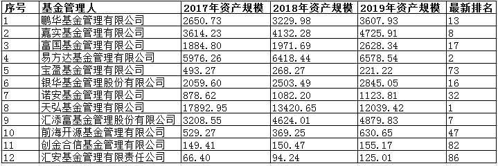12家基金公司近三年资产管理规模 (单位:亿元) 数据来源:同花顺iFinD