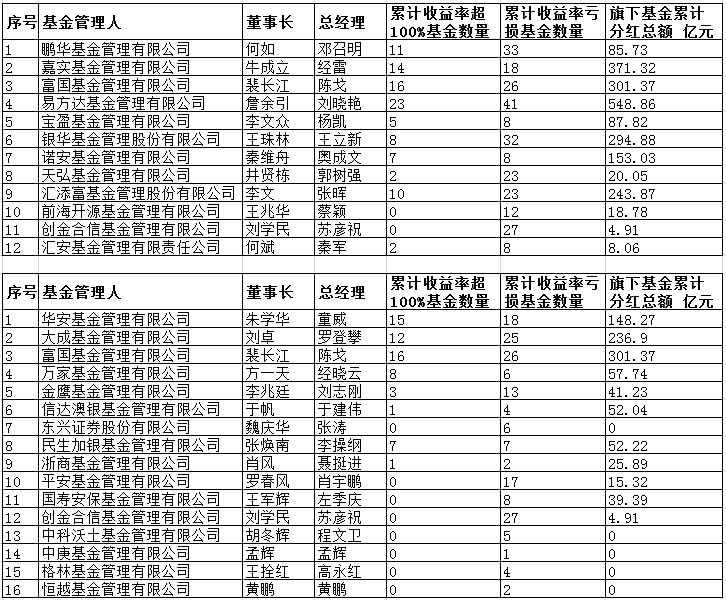 大型基金净值翻倍产品较多成管理能力“火车头”
