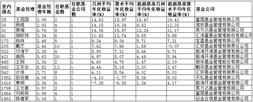 业绩前20名主动管理型权益基金的基金经理收益率情况 数据来源:同花顺iFinD