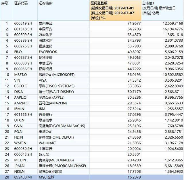 来自wind的数据亦显示,今年以来,MSCI全球指数上涨16.2%,而涨幅排在他前面有很多是“大家伙”。