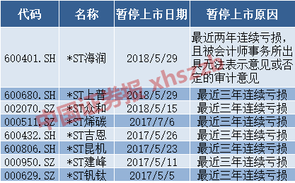 除*ST烯碳外,目前A股还有哪些公司有暂停上市或是退市的风险?