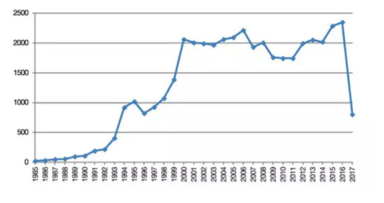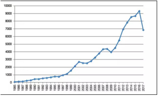 根据中国专利保护协会《人工智能技术专利深度分析报告》显示,近年来人工智能的技术研发在我国达到了空前的热度。近十年来,在中国进行专利申请的年度增长率明显更高,尤其是最近两年,几乎呈现直线上升的趋势,这一增长势头目前没有减缓的迹象。