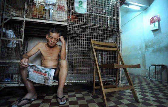 在寸土寸金的香港,有一种将一间房切割成几间房出租的,每间房五脏俱全,有床有柜有厕所,再好一点的就是还有个小厨房,但内部极其狭窄和压抑。这就是所谓的劏房。