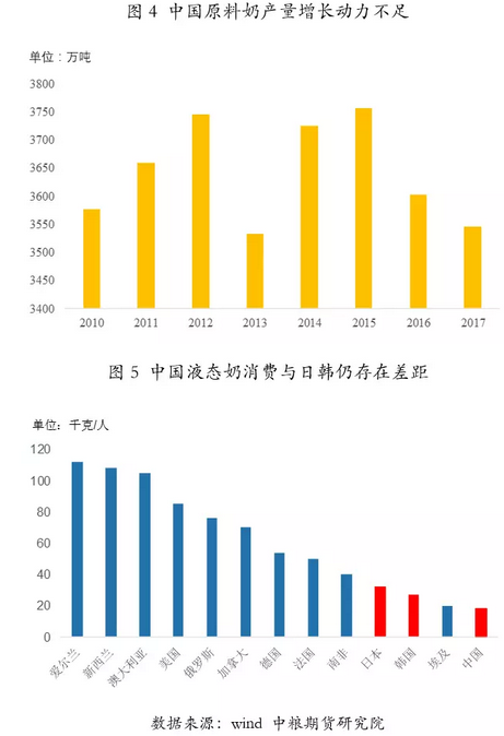 第二,乳品消费量处于低位,市场潜力较大。