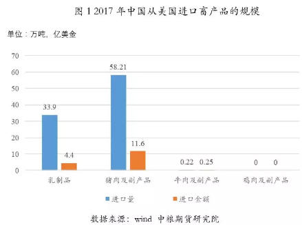 根据中粮集团提供的数据显示,2017年中国从美国进口畜产品(含副产品)共计16.3亿美金,92.3万吨,约占国内进口总量的15%,不到国内产量的1%。