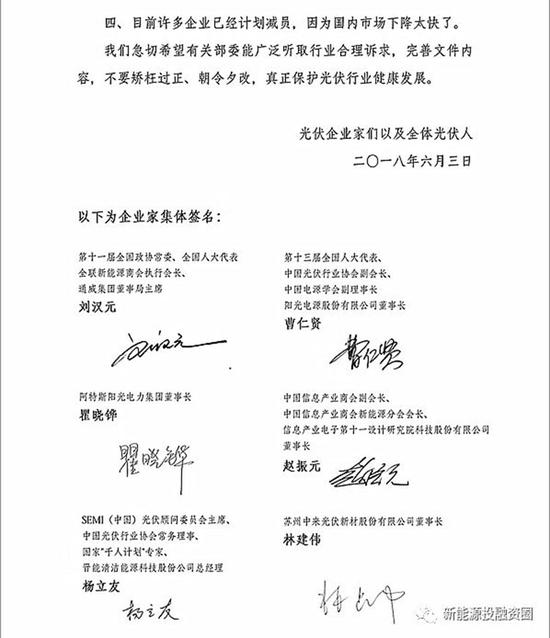 6月3日,11名光伏大佬致信新华社,发表“关于企业家对三部委出台531光伏新政的紧急诉求 ”的联名信。