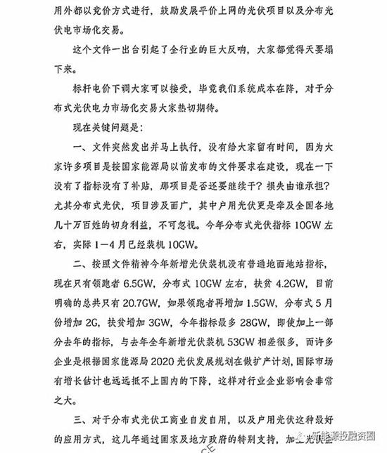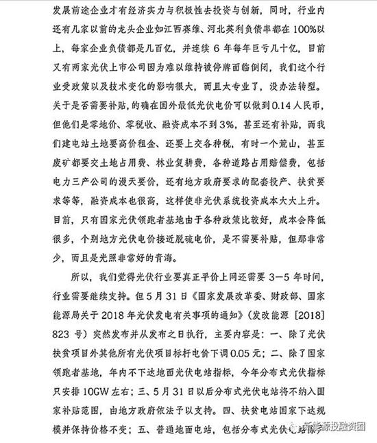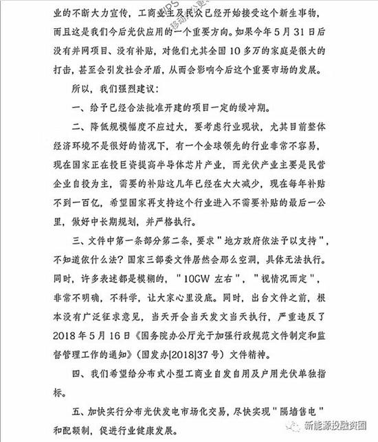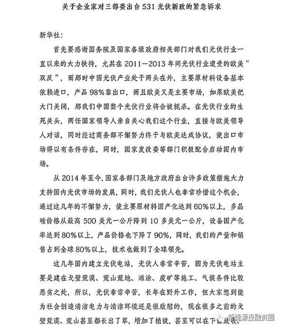 关于企业家对三部委出台531光伏新政的紧急诉求