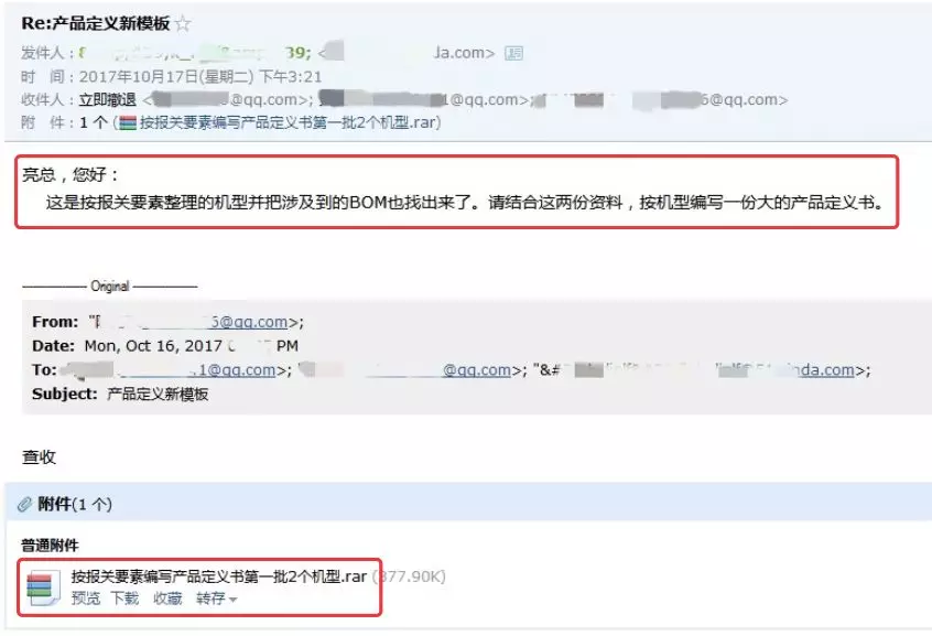“我们不能用公司邮箱传输这些假资料,全部用的QQ邮箱。”张明表示,事实上根本不需要走邮箱,OA(办公自动化)系统里申请就行了。按照正常流程,OA流程走到哪个部门,哪个部门把相关文件进行归档就可以了,会有DCC(文控中心)专员负责。