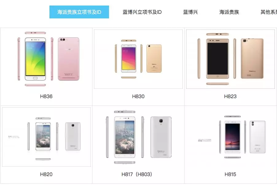 在宏达创新的官方网站,展示着多款“海派贵族”的手机,及手机立项书、ID等。