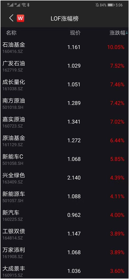 石油基金、广发石油两只基金涨幅排在LOF基金榜首,此外,还有南方原油、嘉实原油等基金涨幅均超7%,此外,还有原油基金涨幅6.44%。
