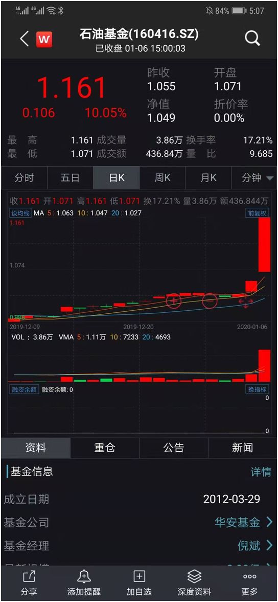 具体看,华安基金旗下的石油基金开盘直线拉升,全天维持高位,并在微盘稳封涨停。