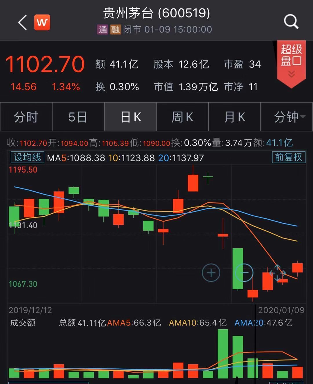 值得注意的是,1月9日消息,茅台和天猫今年战略合作再升级:春节茅台将在天猫超市继续加量发售,当日茅台已大涨1.34%。