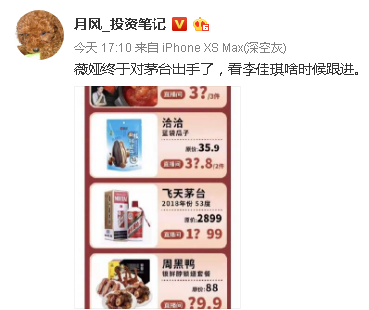 有人说: 薇娅终于对茅台出手了,看李佳琦啥时候跟进。